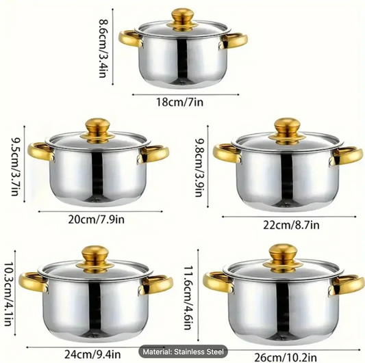 Stainless Steel Cookware Set, Multifunctional Soup Pot Set, Non Stick Pots with Lids and Double Handle, Silver Durable Cookware, 5 Different Sizes